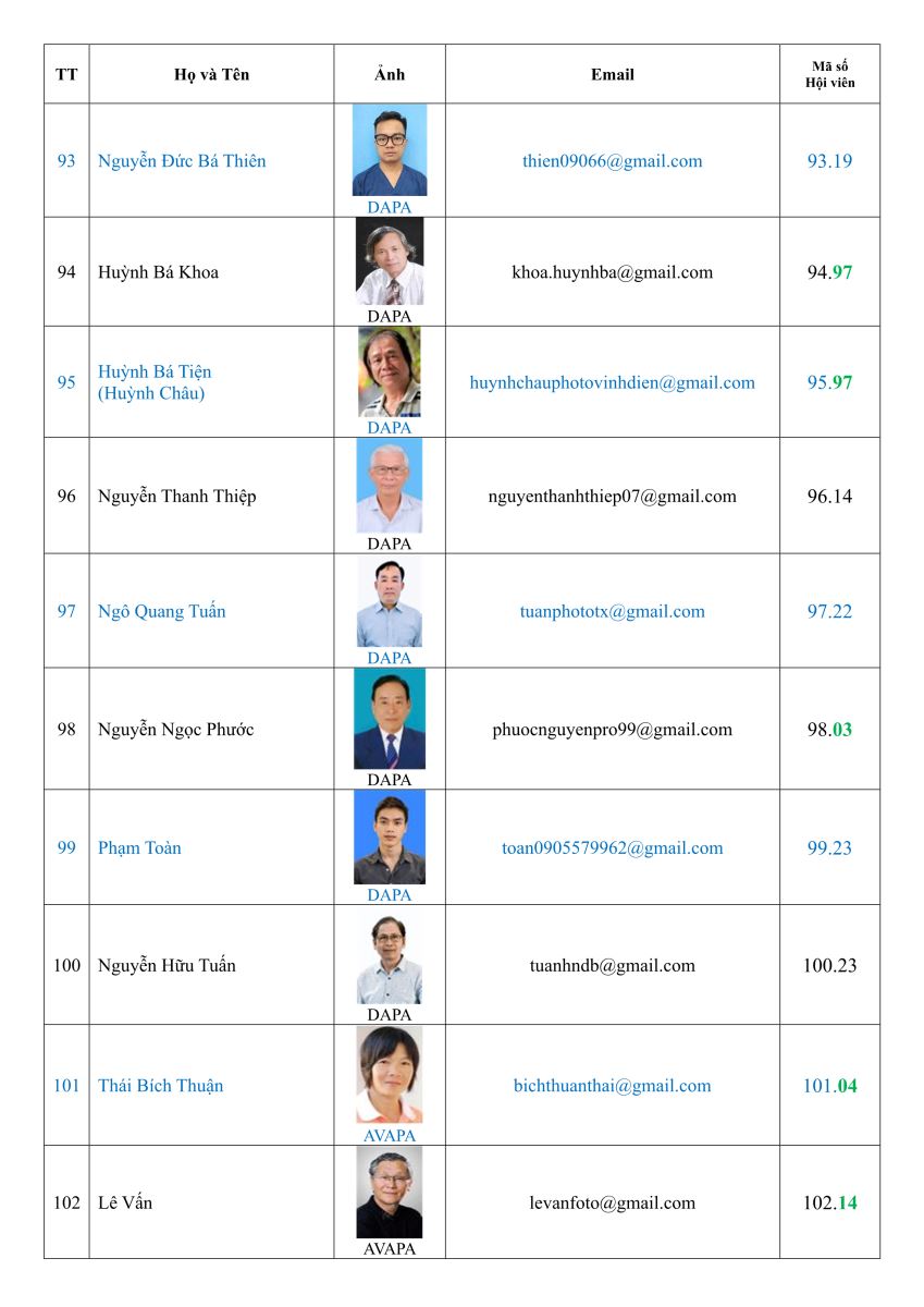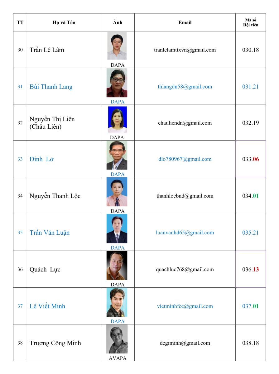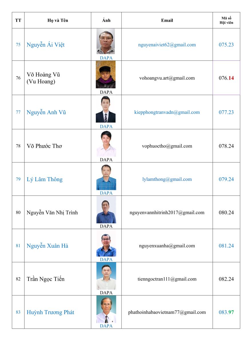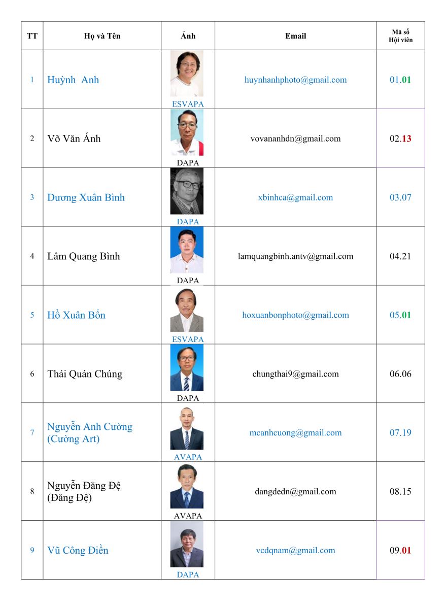 Danh sách hội viên Hội nhiếp ảnh nghệ thuật thành phố Đà Nẵng (DAPA)