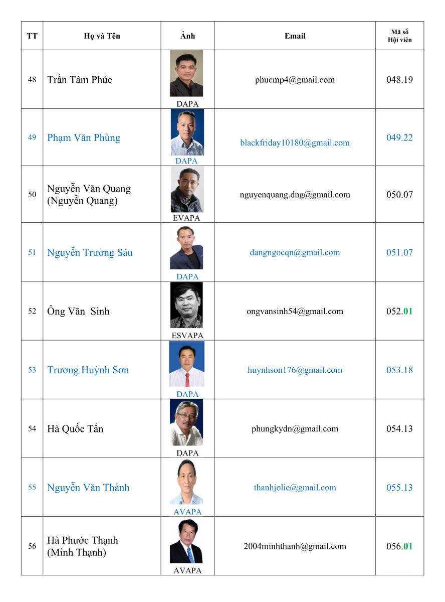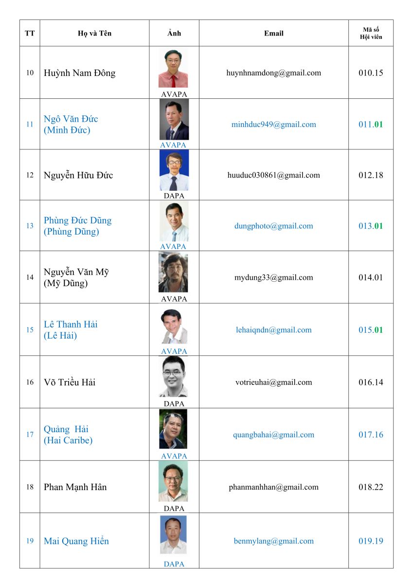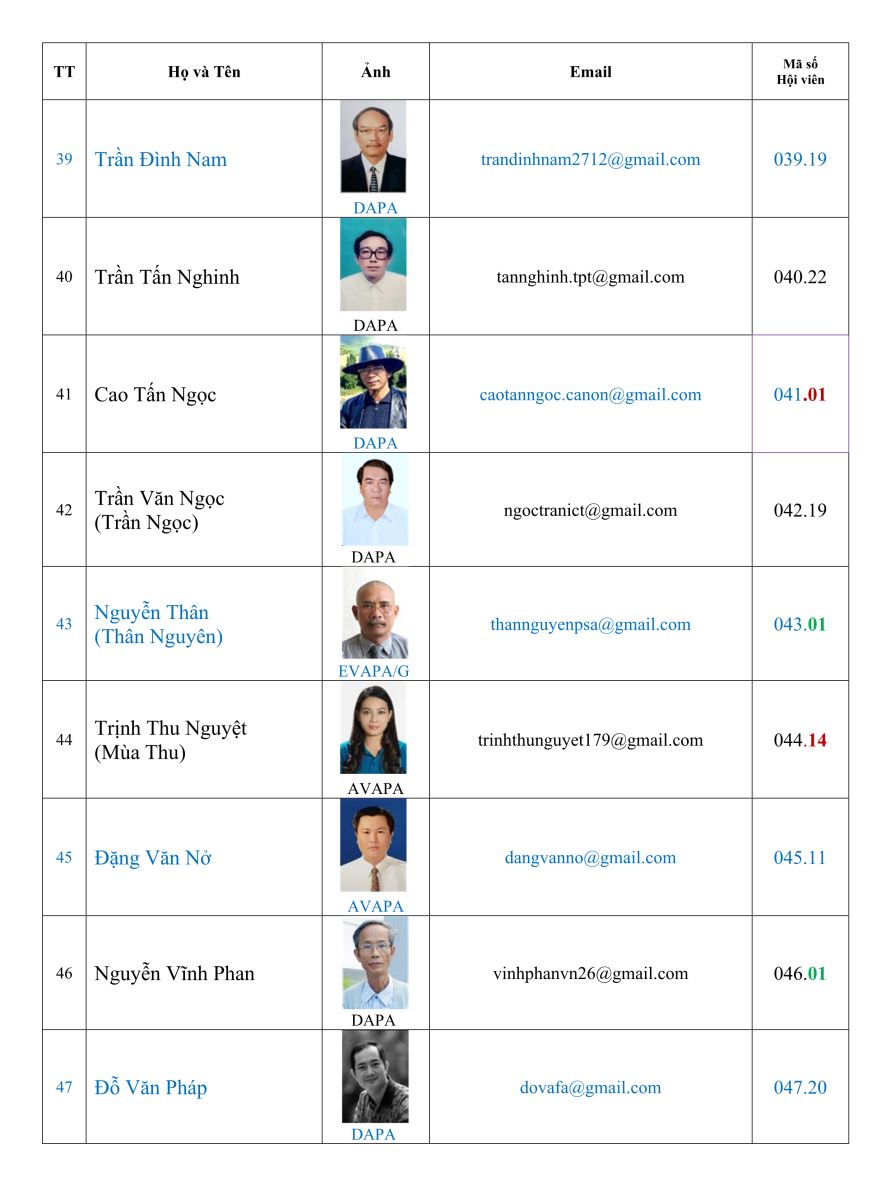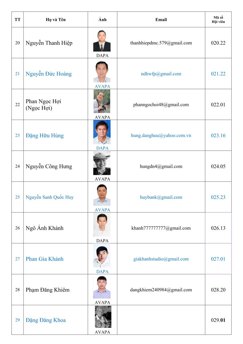 Danh sách hội viên Hội nhiếp ảnh nghệ thuật thành phố Đà Nẵng (DAPA)