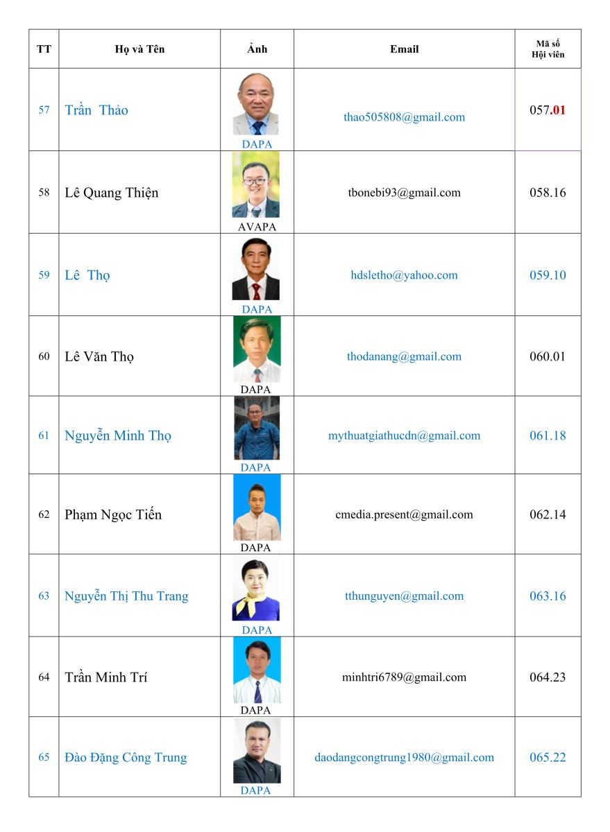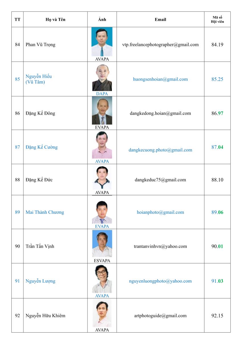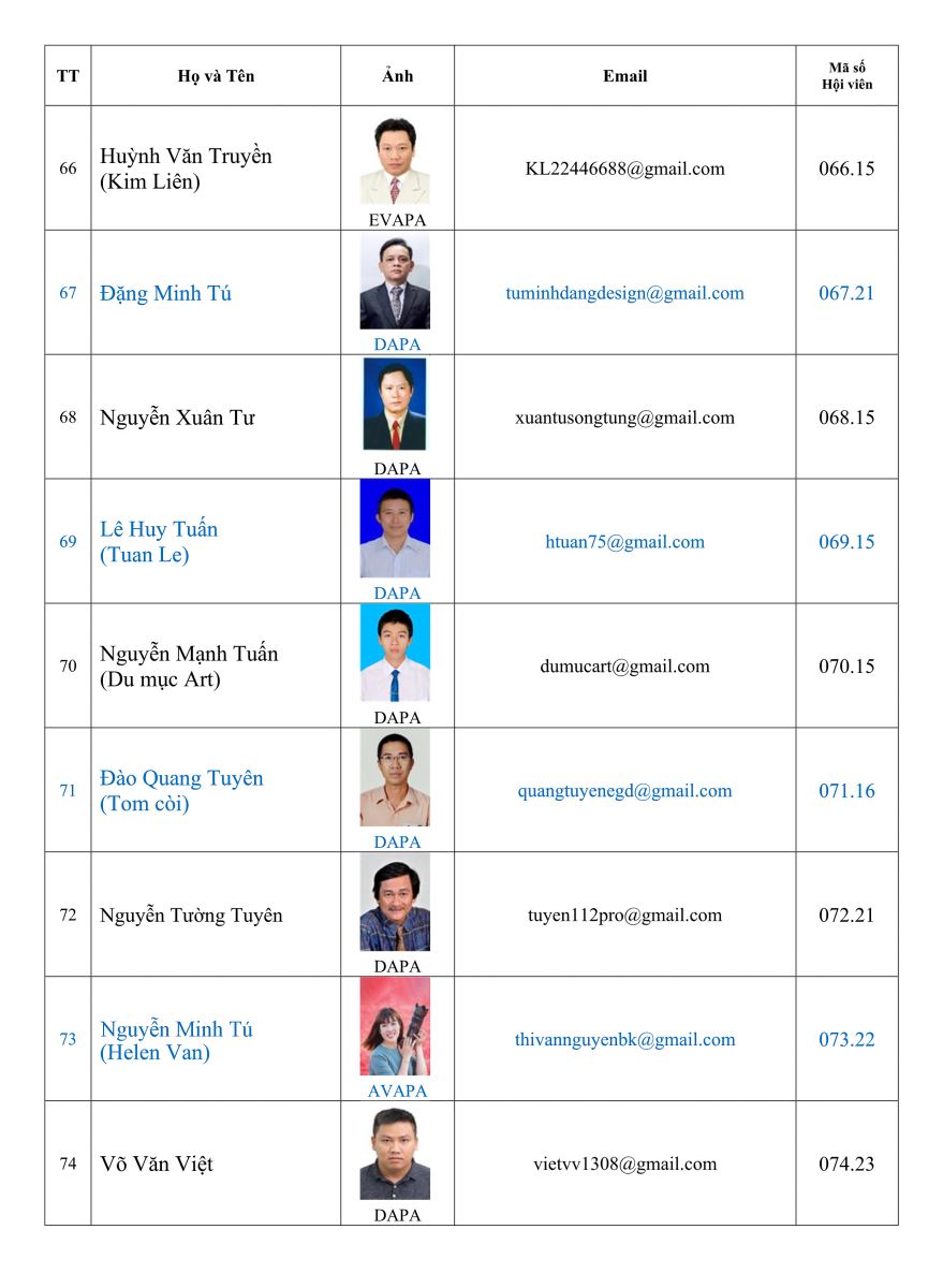 Danh sách hội viên Hội nhiếp ảnh nghệ thuật thành phố Đà Nẵng (DAPA)